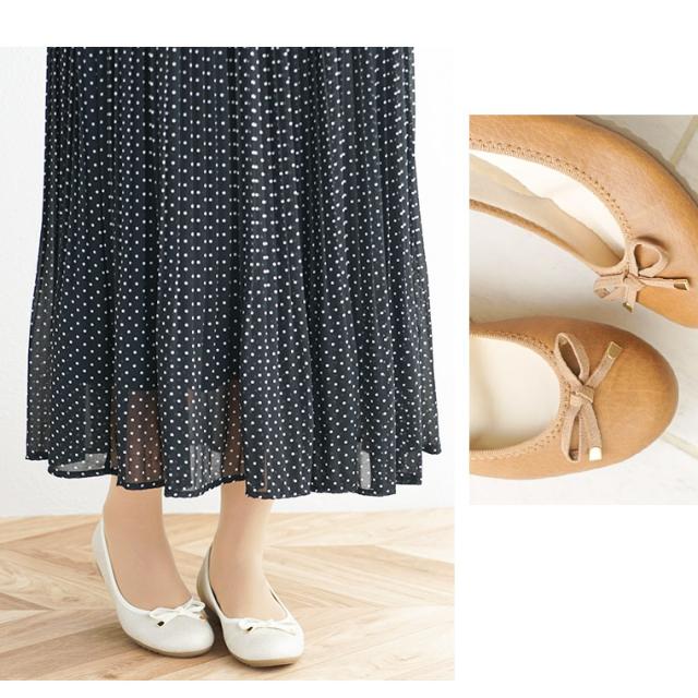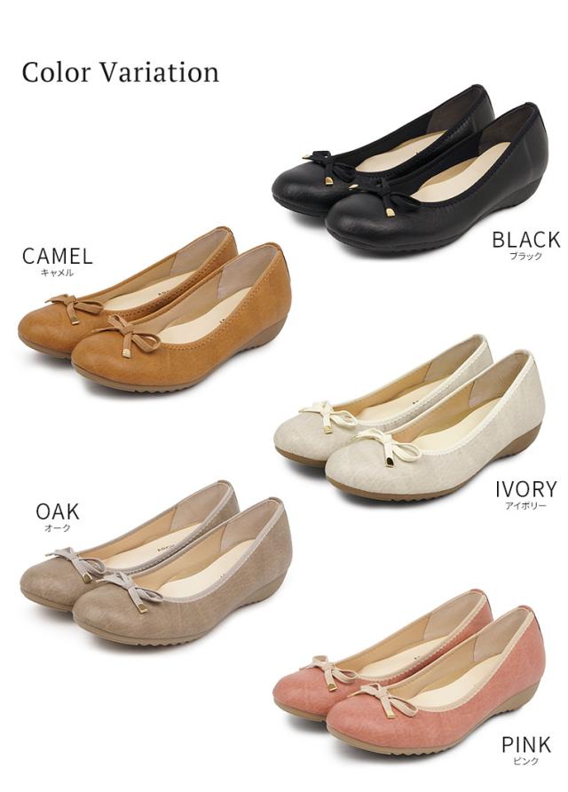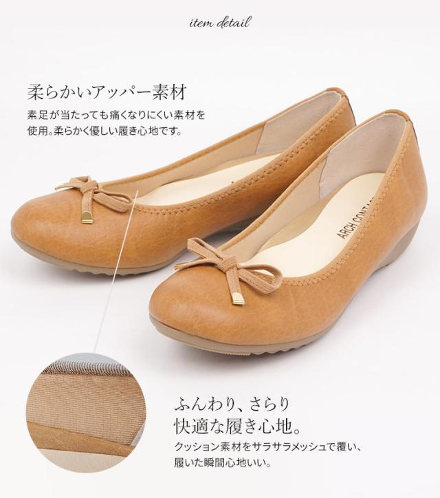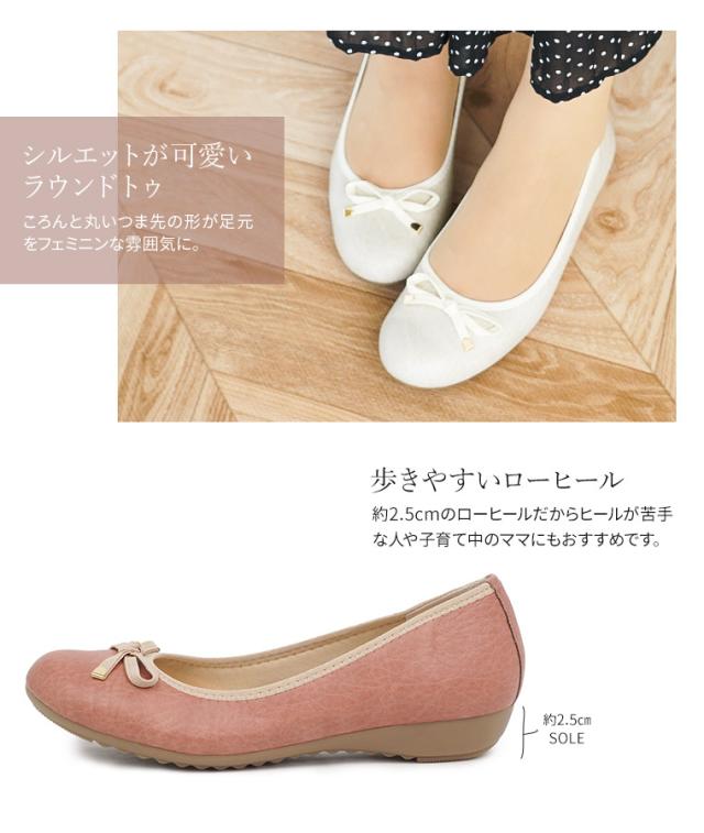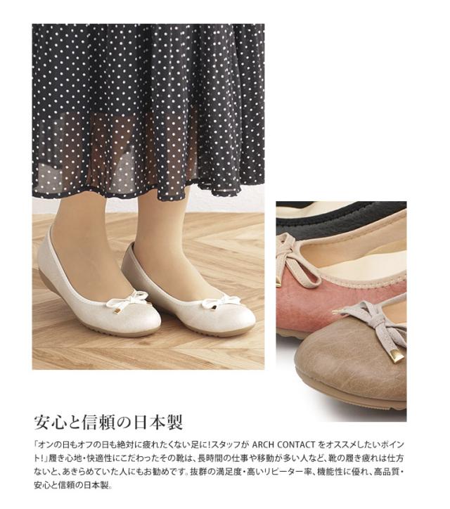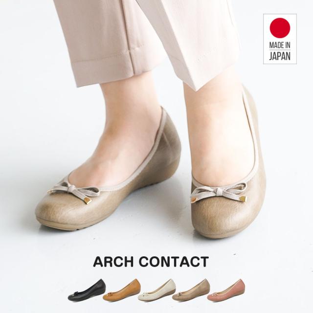 パンプス 痛くない 日本製 婦人靴 アーチコンタクト リボン バレエシューズ フラットシューズ 靴 レディース 歩きやすい 黒 ローヒール コンフォートシューズ ペタンコ靴 小さいサイズ 大きいサイズ 2.5cm 39076