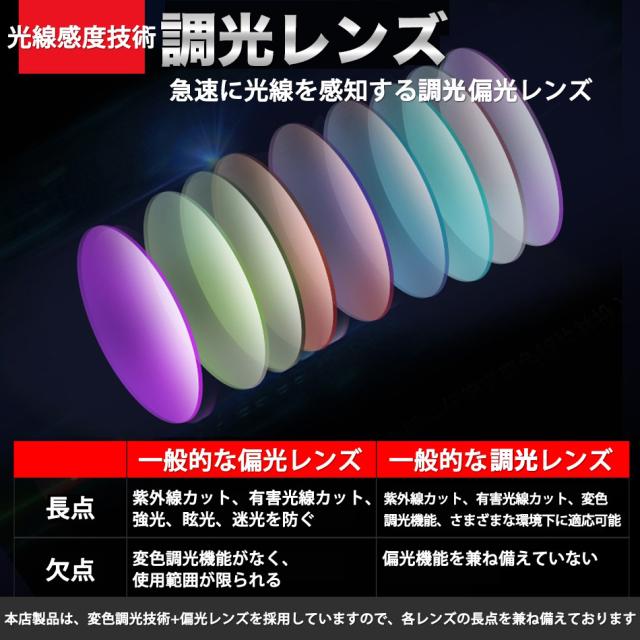 - 発注から2日後に届きました。 早速家の内外で試してみました。調光偏光とも問題ないようです。 付け心地は自分には少しきつめに感じるが長時間使用してみないとわからない。 造りは安価品に比べると丈夫そうに見...