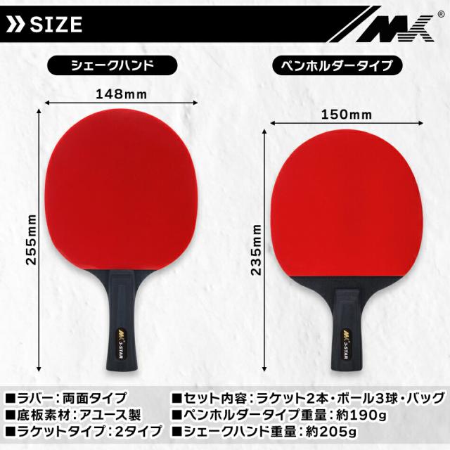 (ショートグリップ2本・ピンポン玉3つ・ラケットケース付き)