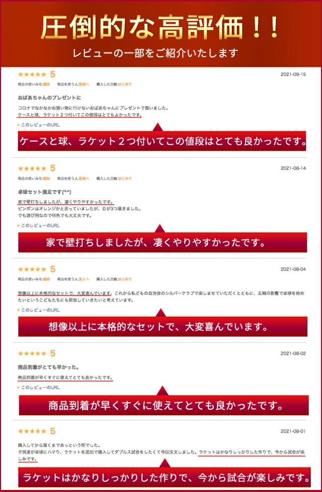 - 子供が卓球部に入ったので、こちらでラケットを購入しました。 発送がとても早くて梱包もしっかりしていました。 子供も気に入ったみたいです。 また機会がありましたらよろしくお願いします。