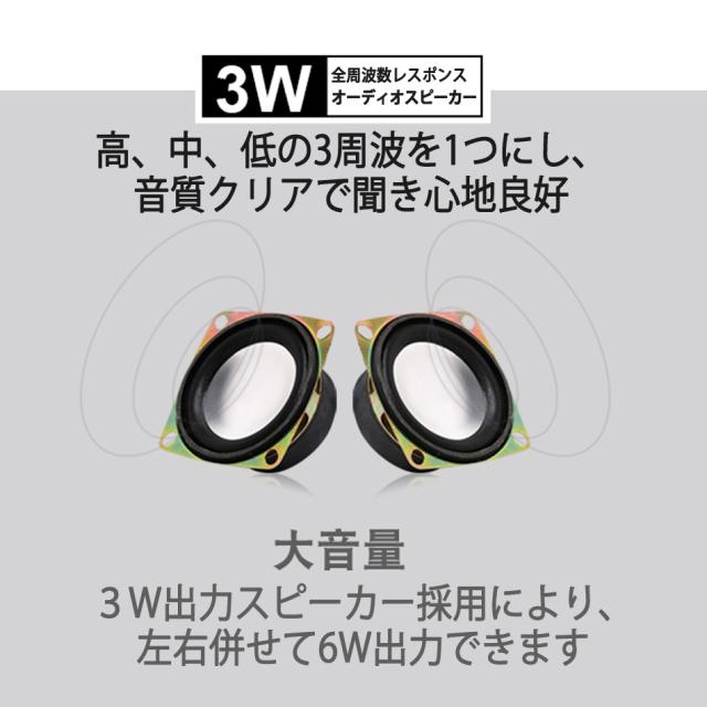 小型なのに左右合わせて6Wの高出力でサラウンドサウンド