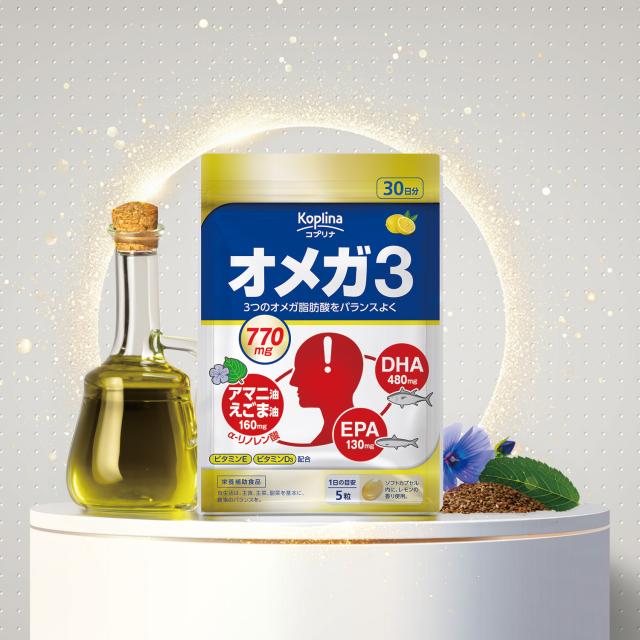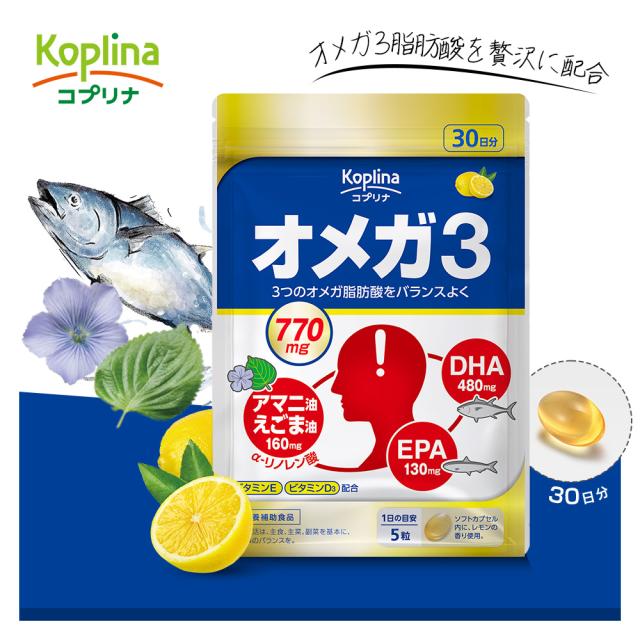 オメガ3 150粒 1個30日分【ソフトカプセル/DHA/EPA/アマニ油/えごま油/α-リノレン酸/ビタミンD/ビタミンE/健康/栄養補助食品/安心国内製造/コプリナ/メール便・送料無料】