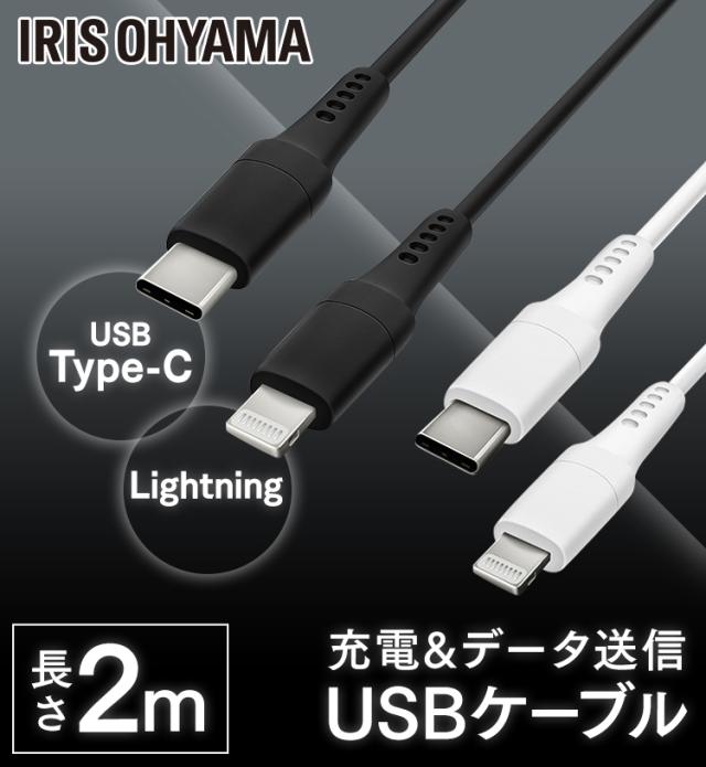 USB-C to USBケーブル 2m 【メール便】 ICCL-A20 全2色 全2色 USBケーブル 通信ケーブル 充電 データ通信ケーブル けーぶる USB Type-C AC充電器 2重シールド PD対応 アイリスオーヤマ