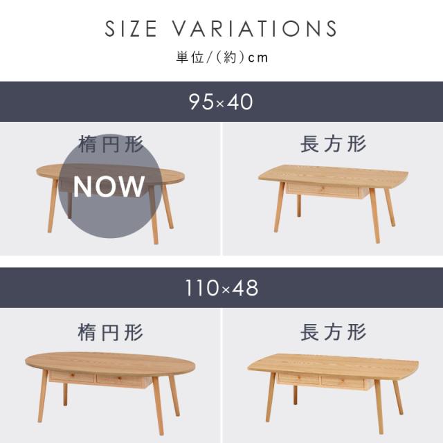 天然木の魅力 引き出し付き センターテーブル 幅95cm 【送料無料】 オーバル 楕円形 ローテーブル ミニテーブル 小さいテーブル おしゃれ 一人暮らし 1人用 ウォールナット タモ