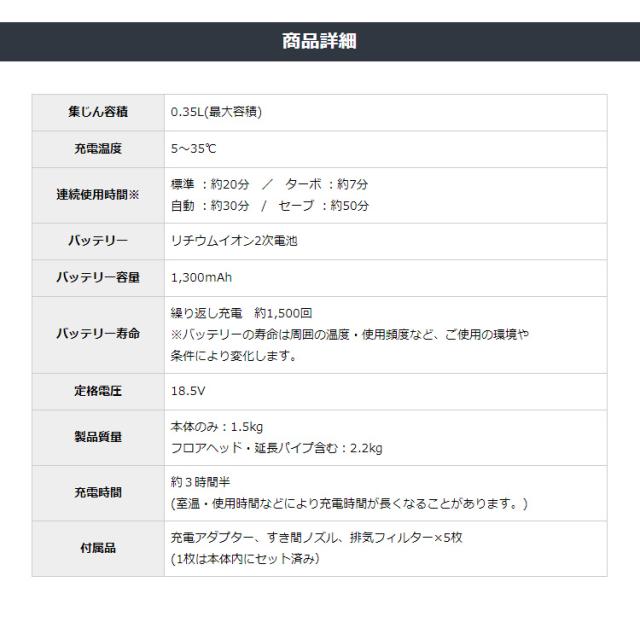 - パワーもあり、とても使いやすいです。思ったより軽いし、充電して使用時間も満足です。もっと早く購入決めればよかった。