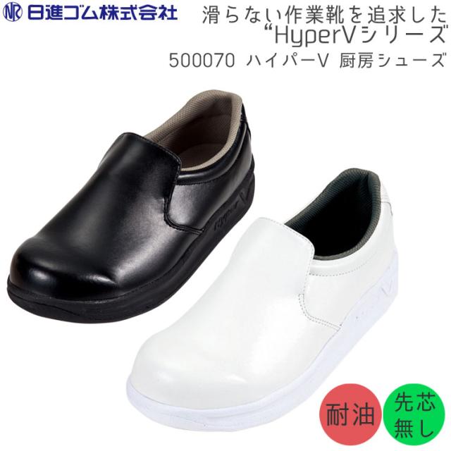 靴 シューズ コックシューズ 厨房用シューズ ハイパーV 厨房シューズ 500070 ホワイト ブラック 大きいサイズ 28cm 耐油 耐滑