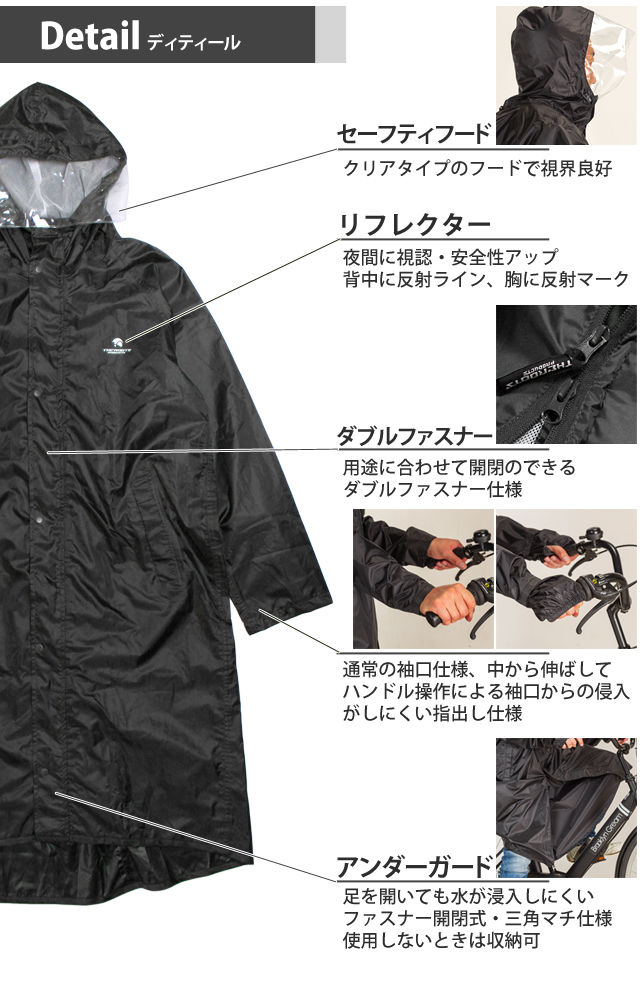 | 商品説明 | 対象:メンズ レディース 大人 兼用 タイプ:レインコート レインウェア 雨合羽 カッパ THEROOTS リュック対応 自転車 サイズ:S M L S〜L 色:ブラック 黒 用途:アウトドア/職人さん/作業員/自転車/スポーツ観戦/キャンプ 耐水圧 10000mmH2O 透湿度 3000g/m2/24hr ・クリアタイプのフードで視界良好 ・胸と背中にリフレクタープリント ・ダブルファスナー仕様 ・2way袖口 ゴム袖指穴付きタイプに切替可 ・背中ファスナー開閉でリュックに対応 ・足を開いても水が浸入しにくいファスナー開閉アンダーガード付き ・収納袋付き 繊維部分は裏側より目止めテープを張ることで水ぬれを防ぐシームテープ加工 内側は袖先までマイクロメッシュ仕様で快適 |
