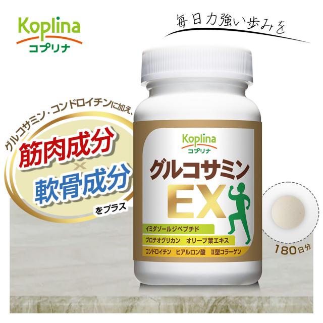 グルコサミンEX 180粒 1個30日分【小粒タブレット/コンドロイチン、コラーゲン、イミダゾールジペプチド、ヒアルロン酸、プロテオグリカン配合/オリーブ葉/軟骨成分/筋肉成分/健康/サプリ/サプリメント/栄養補助食品/安心国内製造/コプリナ/送料無料】