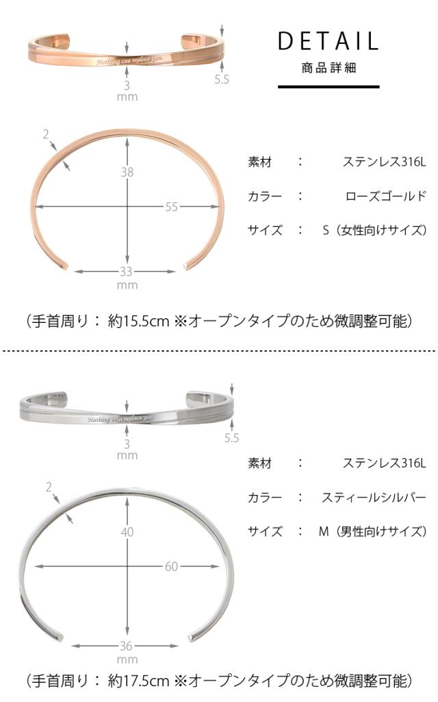 【送料無料 刻印無料】彼氏や彼女、夫や妻・大切な人へのプレゼントに喜ばれる ペアバングル ステンレス 誕生日・記念日やクリスマスプレゼントにもおすすめです。