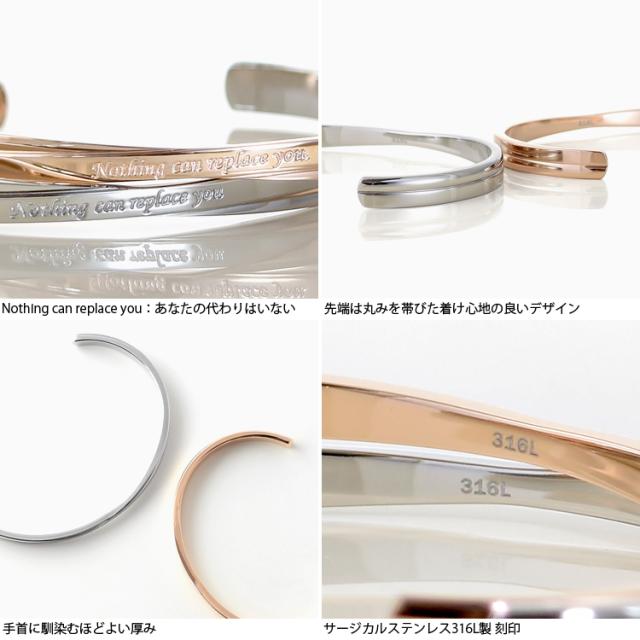 ペアバングル ペアブレスレット 2本セット つけっぱなし 刻印 サージカルステンレス316L 金属アレルギー対応 大人 シンプル クロッシング インフィニティ スティールシルバーカラー ローズゴールドカラー(lstb007st_rg_pair)