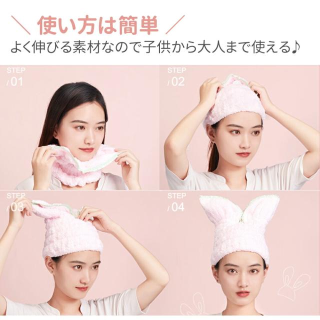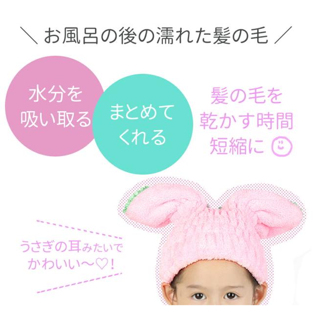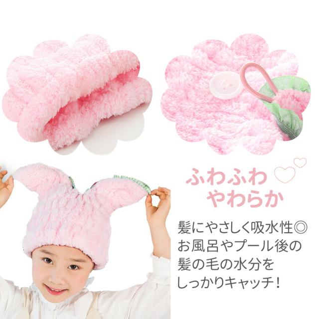 子ども/子供/こども/キッズ/お風呂/お風呂上り/ヘア/キャップ/ヘアキャップ/伸縮性/ドライ/ドライタオル/タオル/ヘアドライ/ヘアタオル/ヘアドライタオル/ソフト/ふわふわ/やわらかい/吸収/吸収性/プール/水分/吸水/アウトドア/海水/海水浴/川/川遊び/大人/スイミング/ジム/お風呂/うさぎ/うさみみ/うさ耳/女性用/レディース/吸水キャップ/タオルキャップ/乾燥性/速乾性/小学生/中学生/女の子