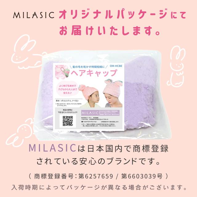 ヘアタオルキャップ ヘアキャップ ヘアドライタオル 吸水タオル 子供 キッズ 大人 吸水キャップ タオルキャップ 乾燥用 吸水性 速乾性 速干性 柔らかい ソフト やわらかい ふわふわ もこもこ レディース 女性用 うさみみ うさ耳 耳付き 水泳 MILASIC OM-HCBE