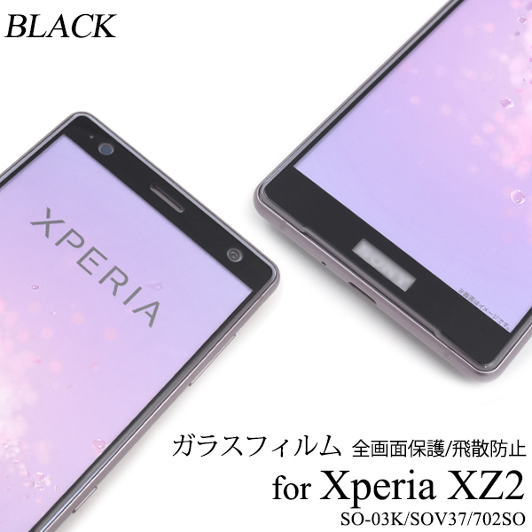 Xperia XZ2 SO-03K SOV37 702SO用 液晶ガラスフィルム 黒 縁あり 飛散防止 全画面 保護 硝子フィルム