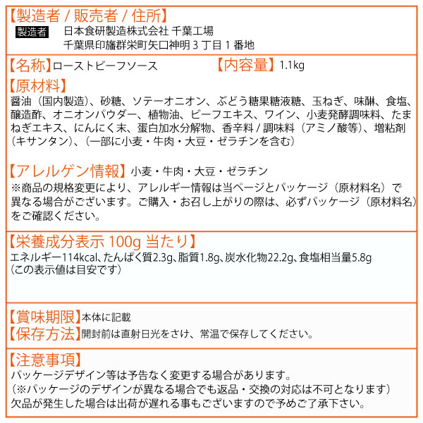 日本食研 ローストビーフソース 1.1kg タレ 業務用 大人数 パーティー
