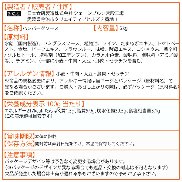 日本食研 ハンバーグドミグラスソース 2kg タレ 業務用 大人数 パーティー