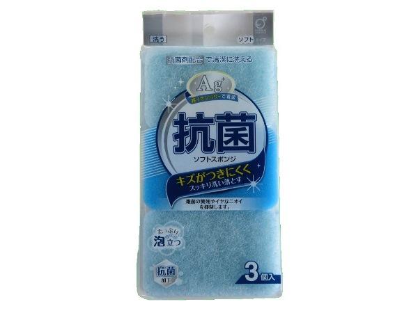 キッチンスポンジ ソフトタイプ 抗菌剤配合 3個入 (100円ショップ 100円均一 100均一 100均)