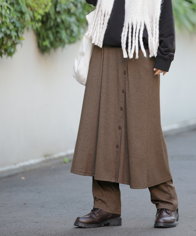 フレアスカート 防寒 Aライン Aラインスカート フレア Aライン ボタン ライン スカートレギンス レギンススカート スカート付きレギンス ルームウェア ルームウエア 部屋着 パジャマ スカパン スカートパンツ アシンメトリー 動きやすい ゴムウエスト ゴムウェスト ウエストゴム ウェストゴム ゴム ドッキング ドッキングスカート マキシスカート 寒さ対策 冷え性 マキシ ずぼん ズボン フリーサイズ S M L 2L 3L XL XXL 2XL ブラック チャコール チャコールグレー モカ ブラウン マリーブロンズ イエロー 黒 黒色 灰色 茶 茶色 黄 黄色 20代 30代 40代 50代 おしゃれ 母の日 お洒落 オシャレ かわいい 可愛い カワイイ ハグユー HUG.U HUGU