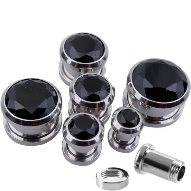 [ジルコニア ホール系 ボディピアス] ブラックジュエル トンネル ボディーピアス 黒色 ラインストーン 6G 6ゲージ 4G 4ゲージ 2ゲージ 2G 0ゲージ 0G 00ゲージ 00G 12.0mm 12mm 12ミリ 大きい ネジ型 ステンレス 耳 メンズ レディース 男性 女性 結婚式 インチ かっこいい