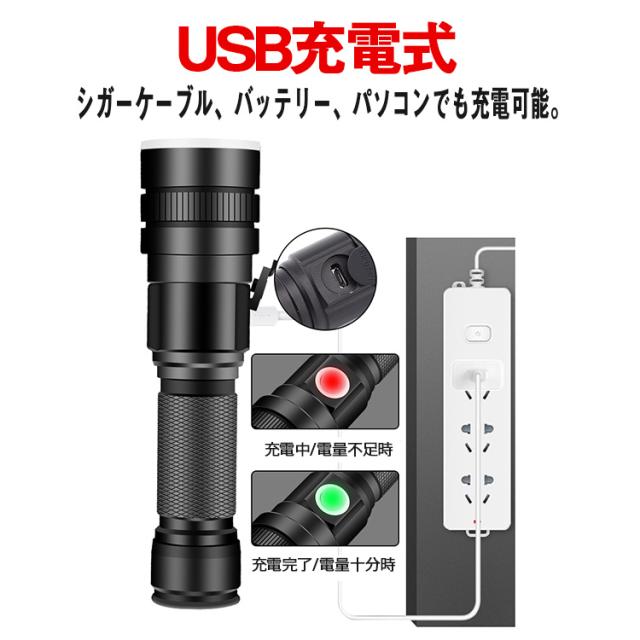 LED懐中電灯 超強力 高輝度 充電式 ハンドライト ミニ型 ledライト CREE ズーム機能 夜釣り 登山 防水 防災グッズ アウトドア