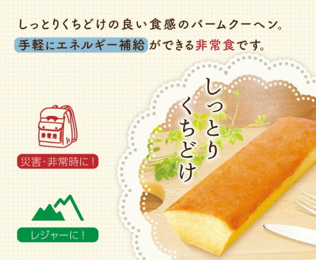 ・しっとり口どけの良い食感のバームクーヘン。手軽にエネルギー補給ができる非常食です。