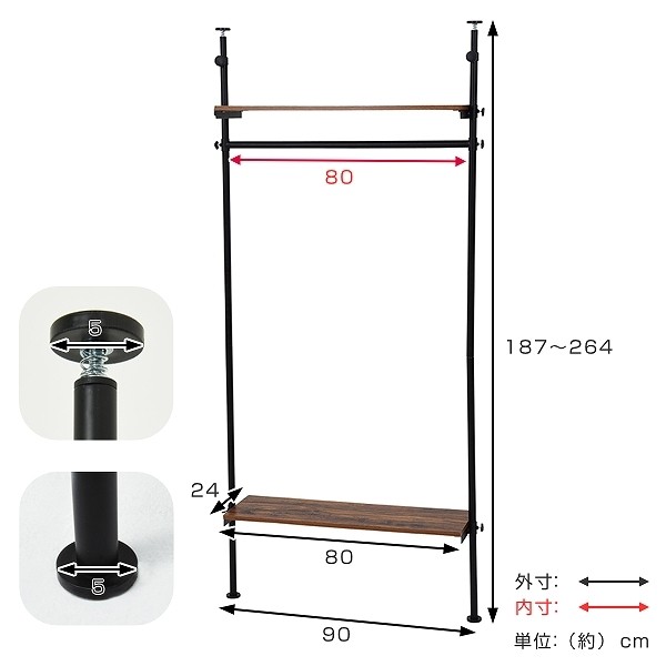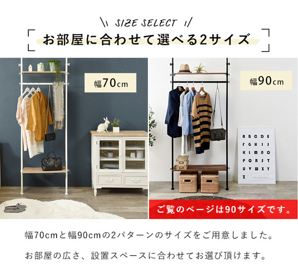 自分好みのラックを作れる 突っ張りハンガーラック 幅90cm