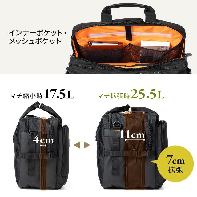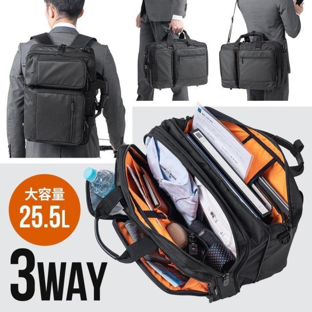 3WAYビジネスバッグ 大容量25.5リットル リュック ショルダー メンズ バッグ ブラック[200-BAG170BK]