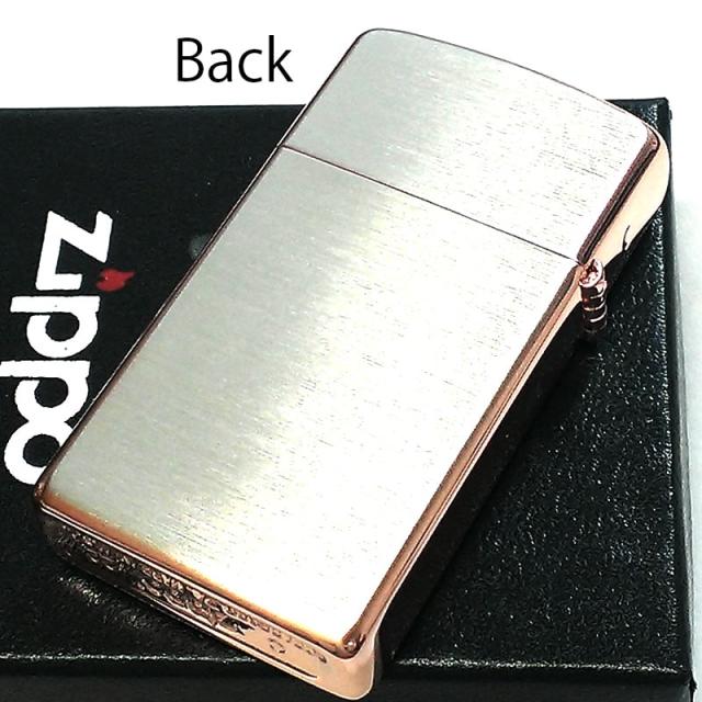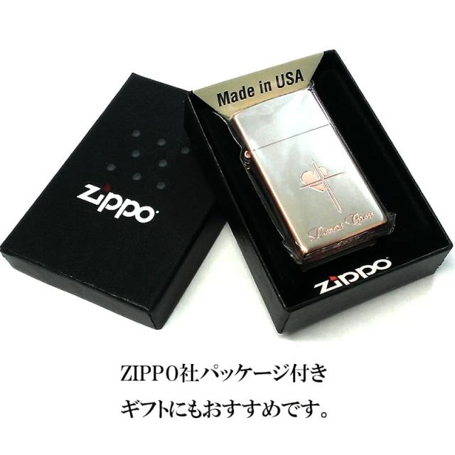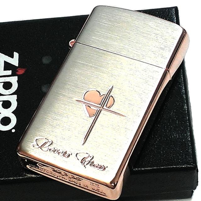 ZIPPO スリム ジッポ ライター ハート クロス ラバーズ 彫刻 ピンクゴールド シルバーサテン 可愛い 女性 メンズ レディース