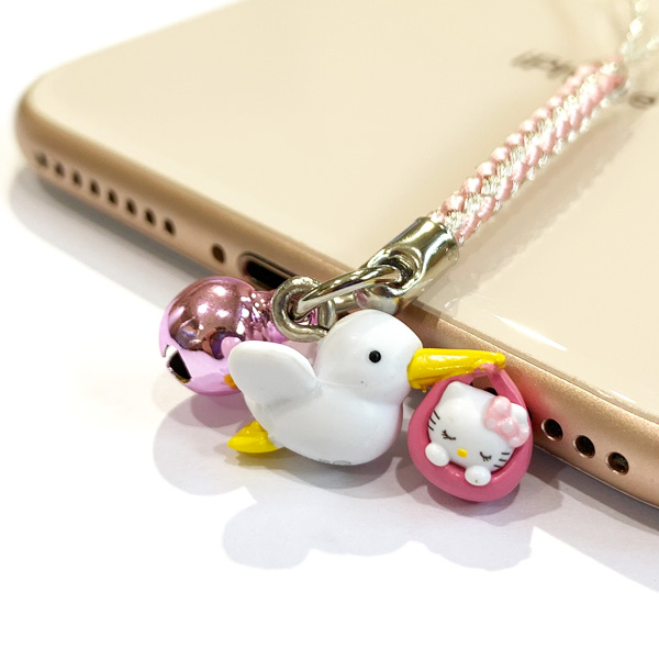 ハローキティ こうのとりキティ 根付けストラップ ピンク