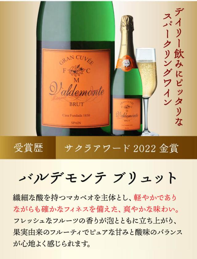 1本あたり624円(税込) バルデモンテ ブリュット 750ml スペイン スパークリングワイン 長S