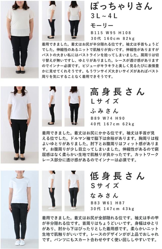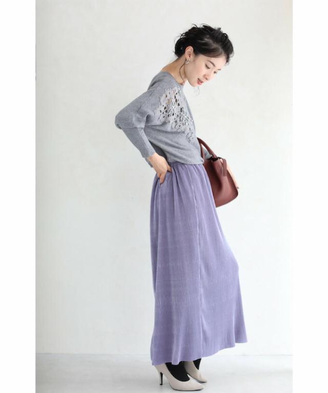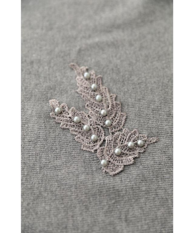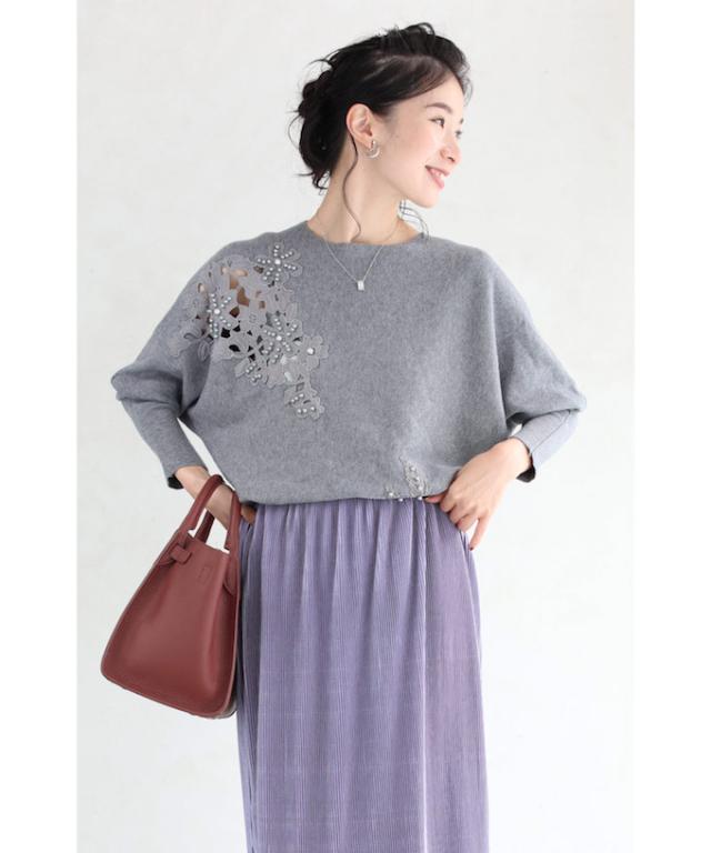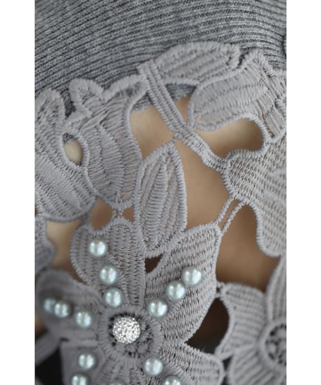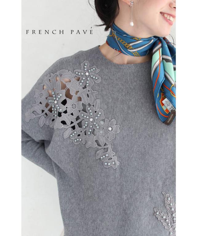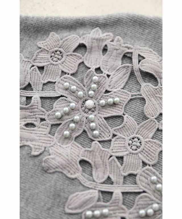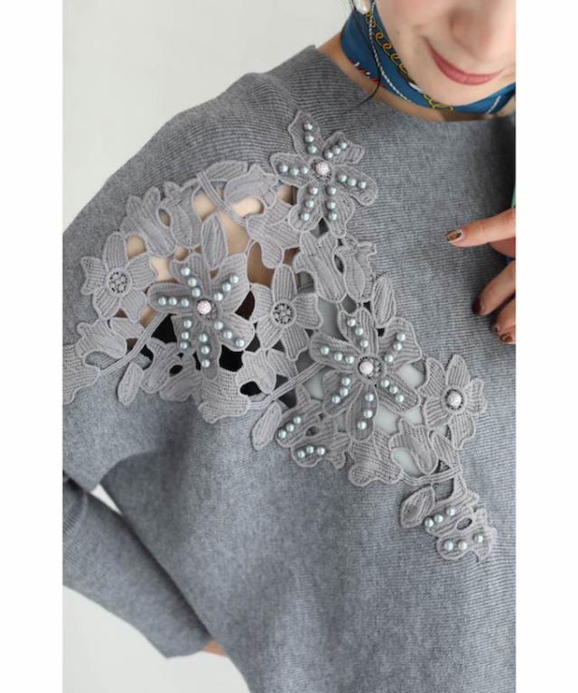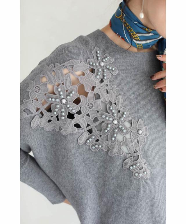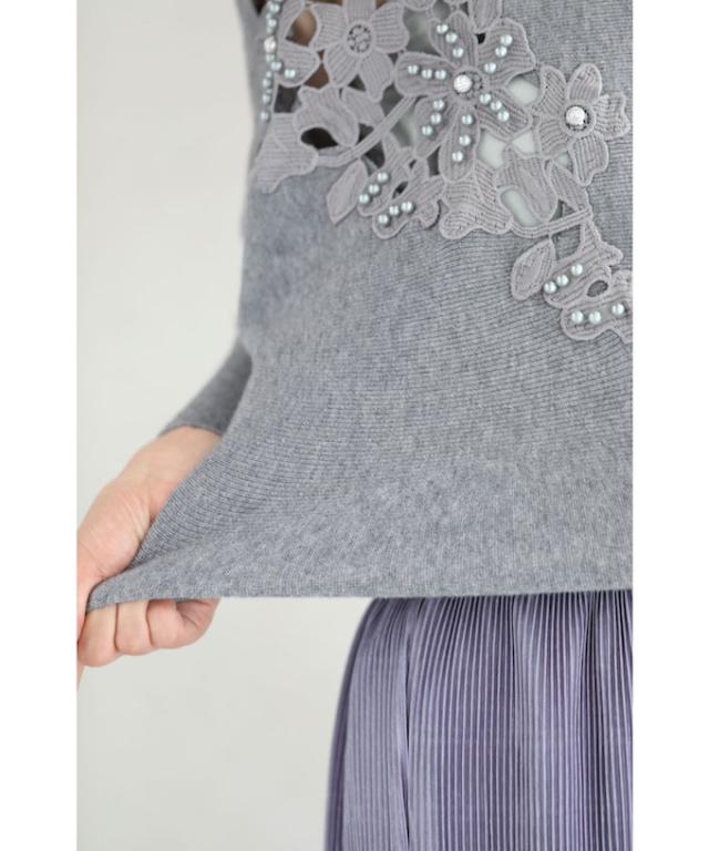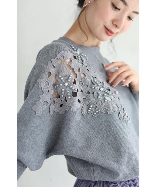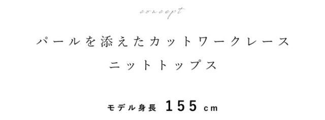 「パールを添えたカットワークレースニットトップス」