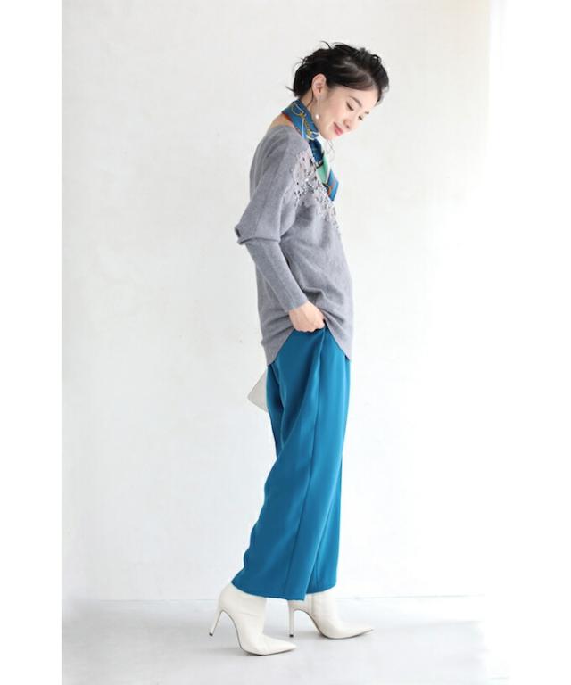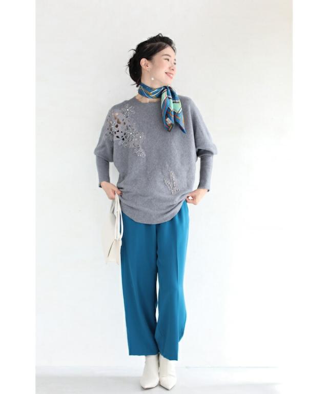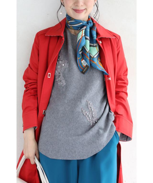 厚すぎない素材感で羽織りを着る際にも、スッキリ着こなせます。