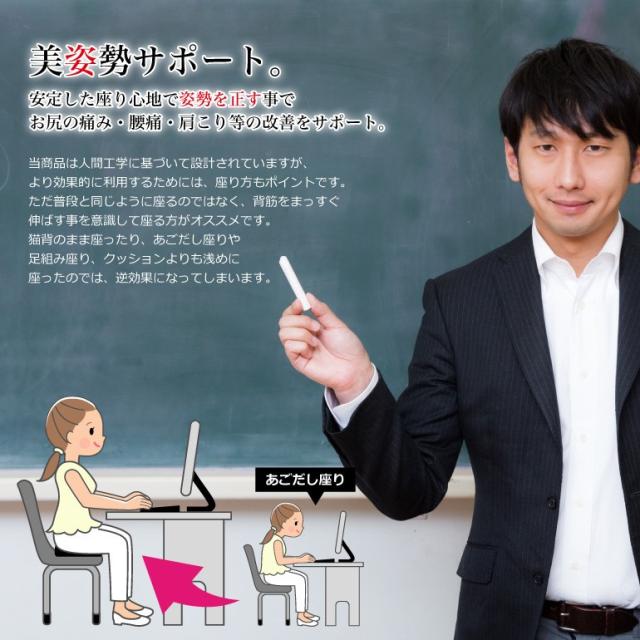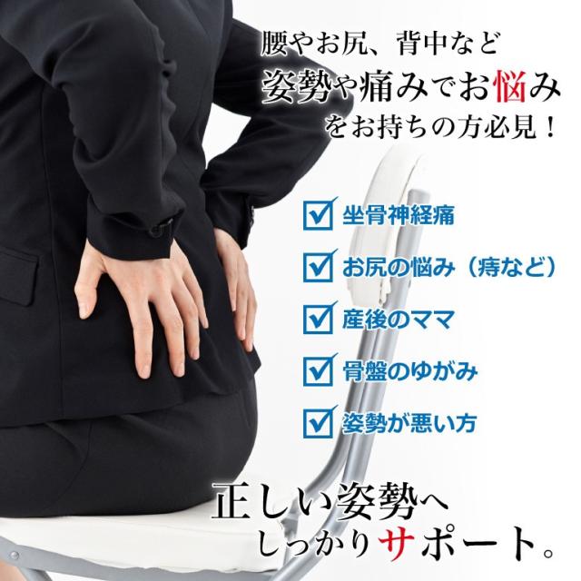 美姿勢をサポートして、腰痛・肩こり・お尻の痛み等の改善サポート。
