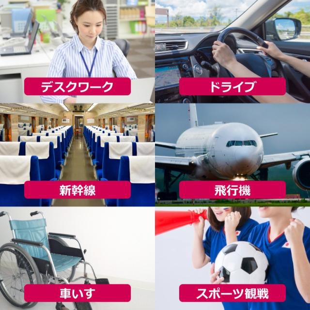 デスクワークや長時間の運転(ドライブ)、新幹線や飛行機などでの長時間移動、車いす、スポーツ観戦など長時間座る事が多い方へ