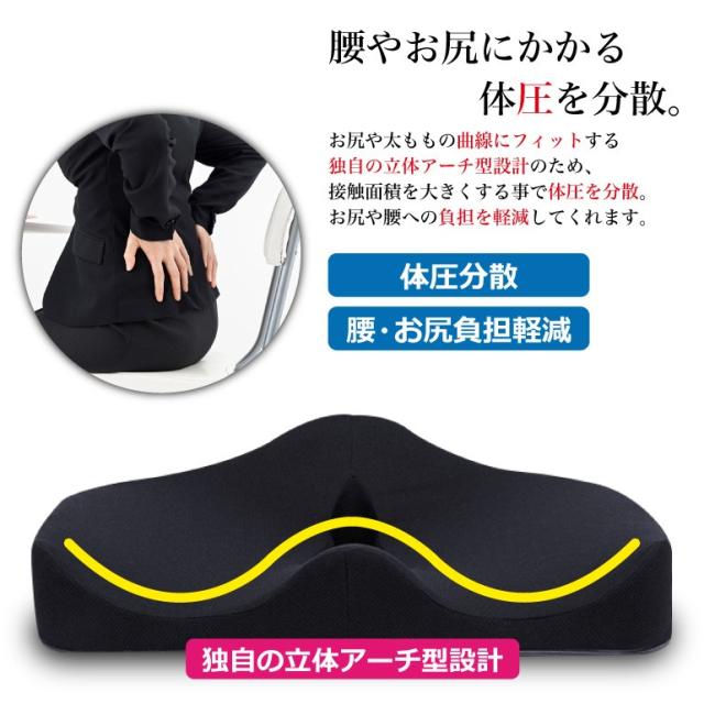 お尻や太ももの曲線にフィットする独自の立体アーチ型設計で腰やお尻への負担軽減!