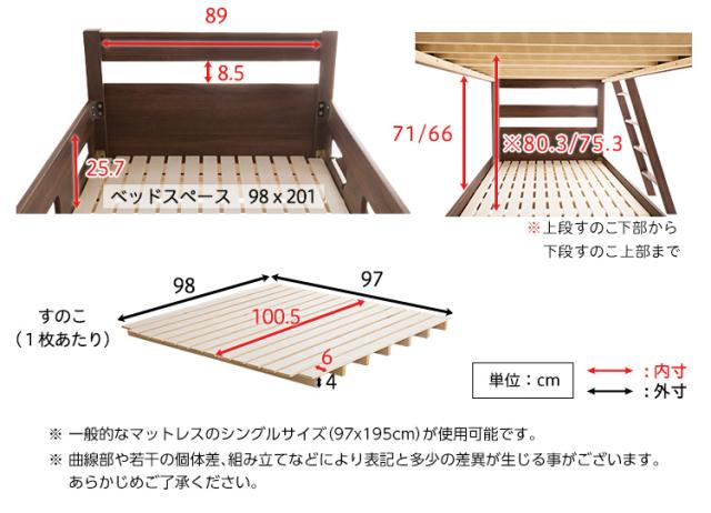 上段下段を離しても使用できるので、シングルベッド2台としても使用できます。