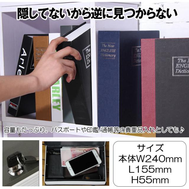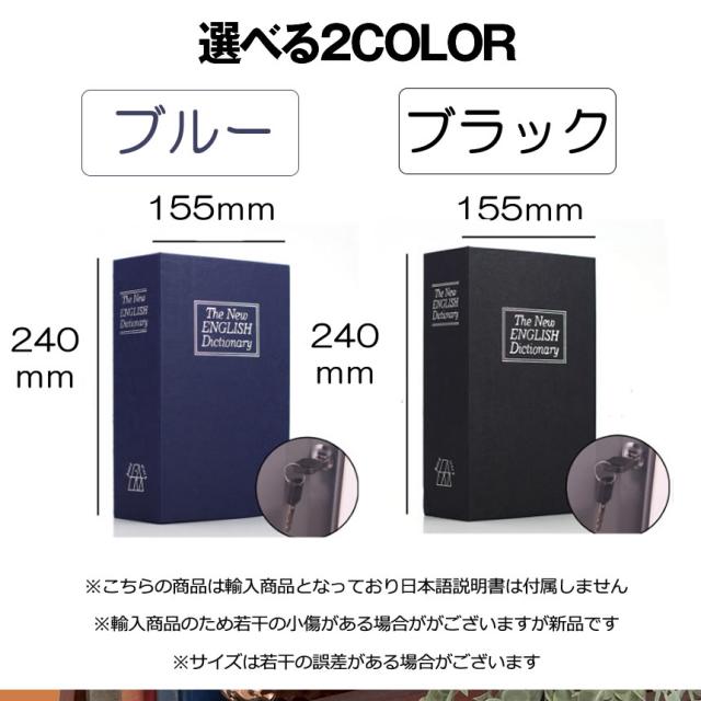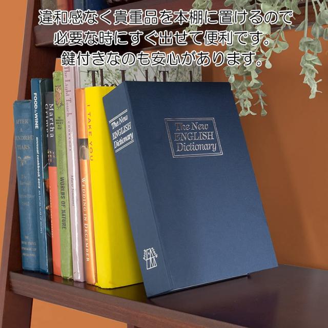 本型金庫 Mサイズ ブラック ブルー 鍵式辞書型 金庫 ユニーク 鍵型 防犯 本棚 大人気文房具 プレゼント 面白いデザイン HOSIKIN-M-BK-KA