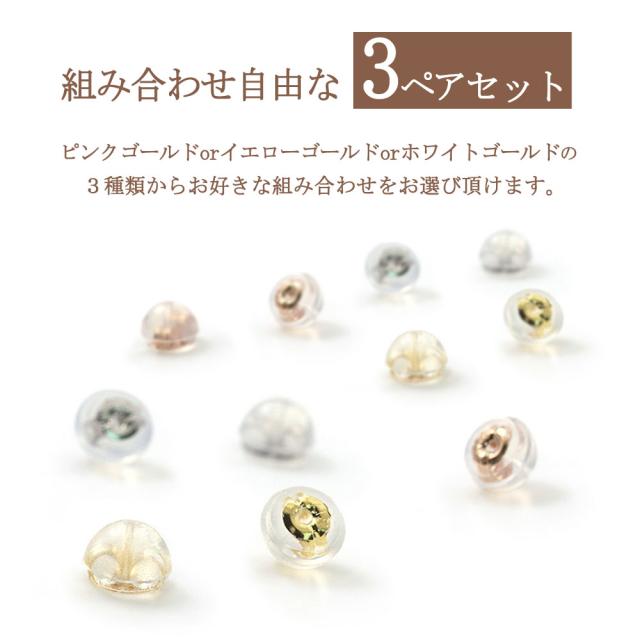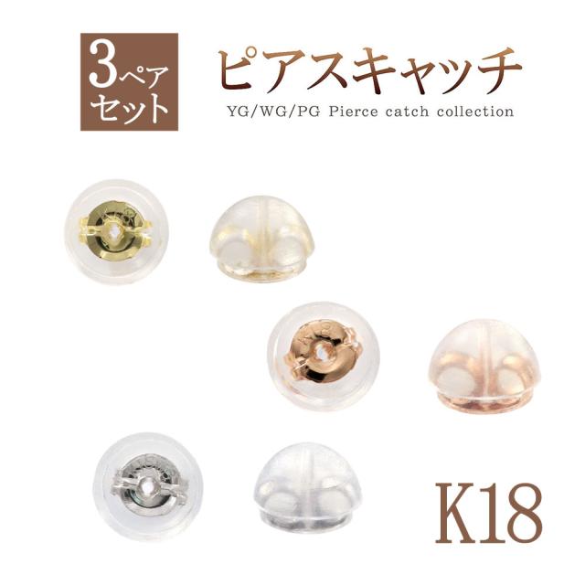 ピアスキャッチ 18K 【 3ペアセット 】 18金 キャッチのみ ピアスのキャッチ パーツ K18 18K イエローゴールド ピンクゴールド ホワイトゴールド ダブルロック シリコン パーツ キャッチだけ 便利 予備 付け替え 交換 キャッチだけ欲しい 紛失 母の日 ギフト 2026