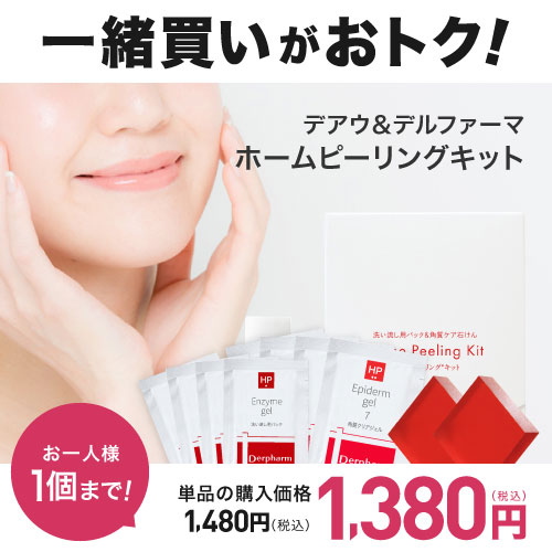 | 商品名 | デルファーマ 洗い流し用パック&角質ケア石けんのホームピーリング(※)キット (※)古い角質を含む汚れを洗い流すこと |