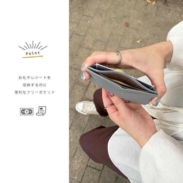 - コンパクトでカードも入り、小銭とりやすいので、 気にいっており今回で3度目の購入です。 色も選べていいです。また違う色も出たら嬉しいです。