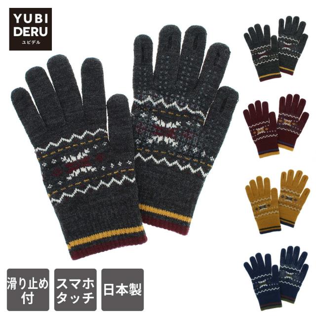 【日本製】レディース ニット手袋 スマホ対応 指先が出る 抗菌 防臭 遠赤外線 滑り止め付 指紋認証 スマホ タッチパネル対応 雪柄 YUBIDERU ユビデル 秋冬 防寒 通勤 通学 自転車 テレビ番組 マツコの知らない世界 ヨークス yorks