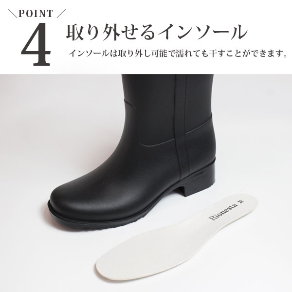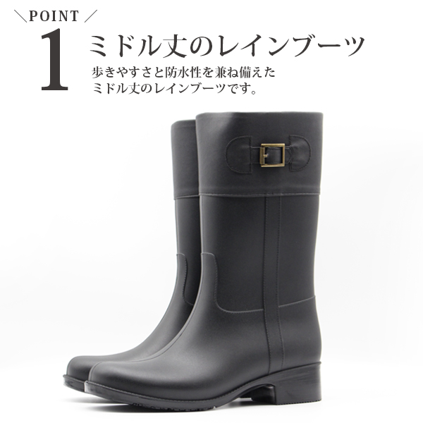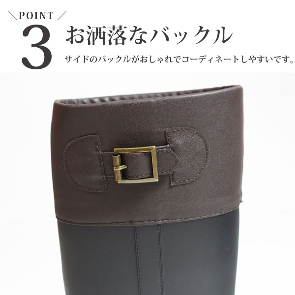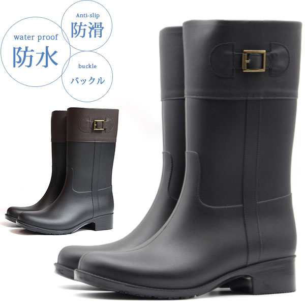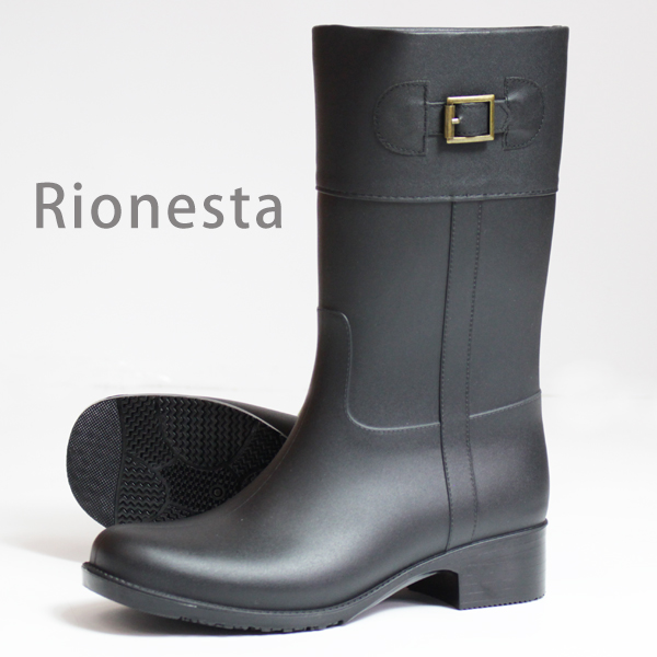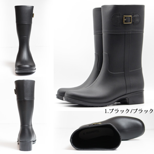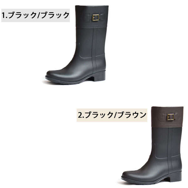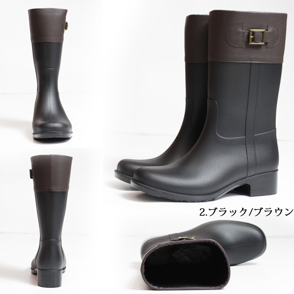 レインブーツ レディース 長靴 ミドル ブーツ ジョッキーブーツ 黒 ブラック 茶 ブラウン 防水 ロング シンプル きれいめ おしゃれ シンプル バックル 雨 ファッション ジョッキー お洒落 女性 婦人 綺麗 美脚 雪 Rionesta C-006 ギフト