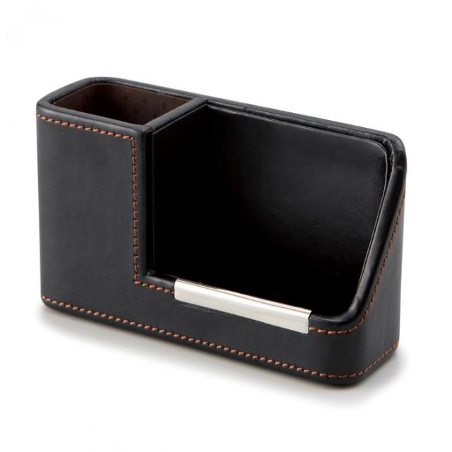 | 黒と茶の2色でまとめ、ステッチでカジュアル感をプラス。年齢を選ばずに使用できる、流行に左右されないシンプルなデザインが魅力です。メガネもスマホも置くだけでおしゃれな書斎風に。ご自分用にはもちろん、大切な方へのギフトにもオススメです。 |
