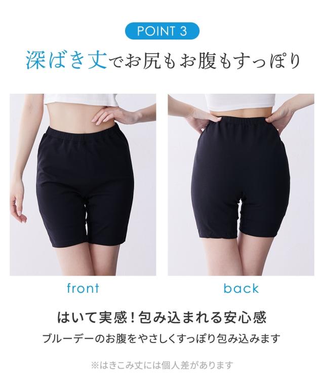 ショーツ サニタリー レディース 裏側全面防水布 綿混 ストレッチ 深ばき 2分丈 オーバー パンツ 黒 M/L インナー ニッセン nissen