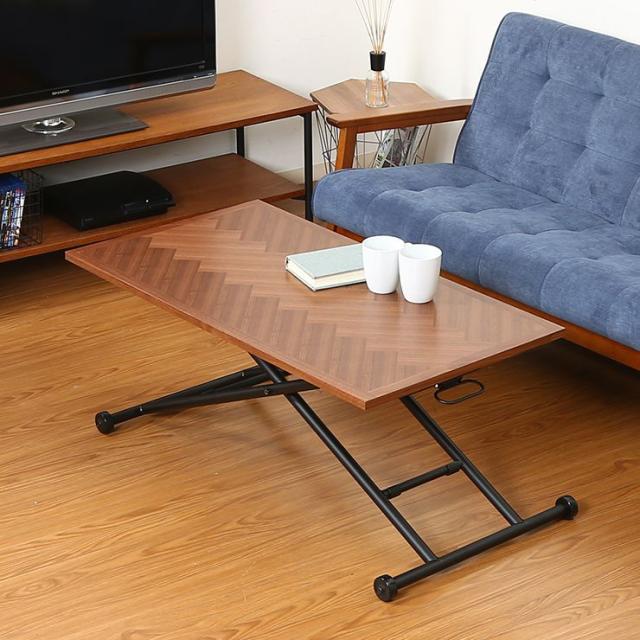 昇降テーブル アンティークブラウン 幅100cm 奥行55cm 高さ14~72cm(代引不可)【送料無料】