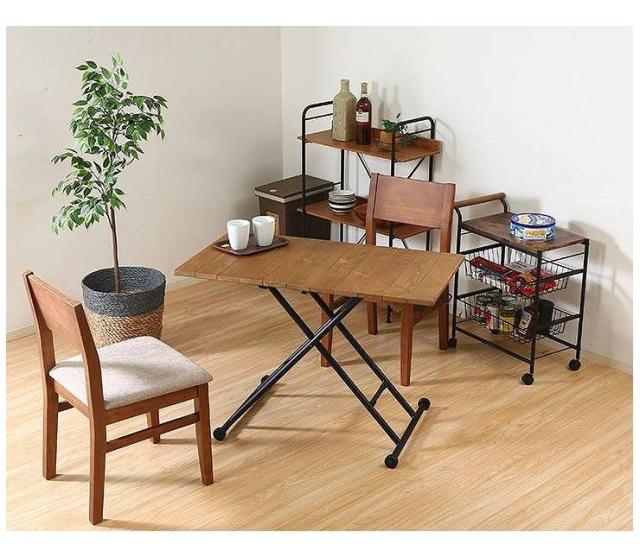 高く調節すると作業机やダイニングテーブル、低く調節するとローテーブルなど、様々な用途で使用できます。