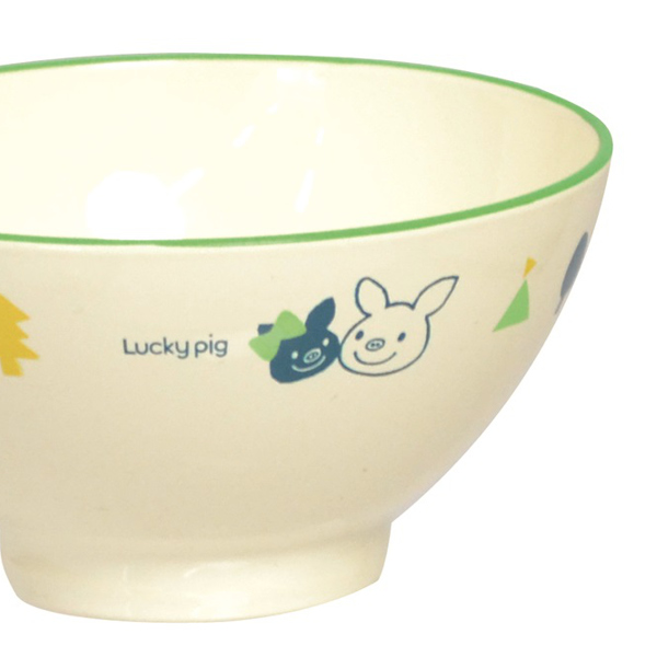 2匹のコブタが可愛らしいお茶碗です。軽くて割れにくい樹脂製で、お子さまの日常使いに最適。元気に楽しく動きまわる「Lucky pig giggle」シリーズのキッズラインです。