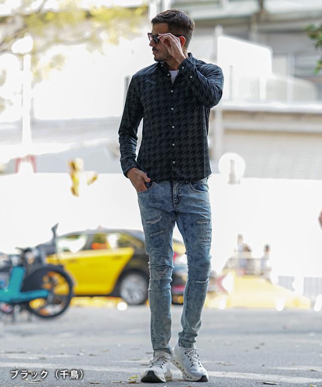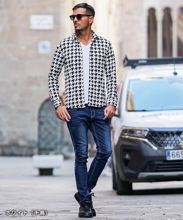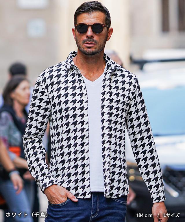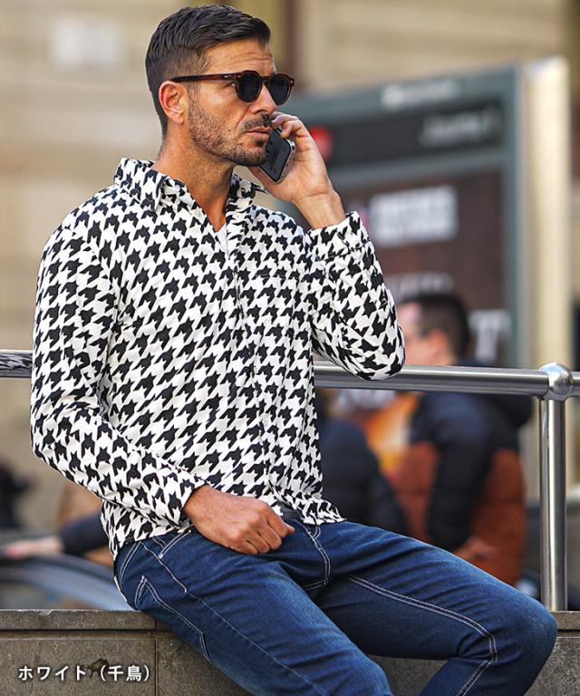 柄シャツ メンズ 長袖 イタリアンカラー シャツ メンズ 長袖シャツ 立ち襟 スタンドカラー シャツ 襟立ちシャツ チェックシャツ 千鳥 ウインドペン カジュアル スリム 細身 細い 派手 無地 白 黒 メンズファッション ちょいワル 秋 秋服 秋新作 新作