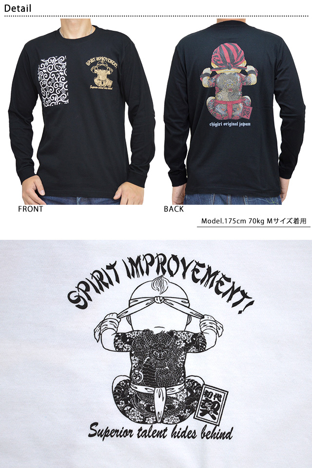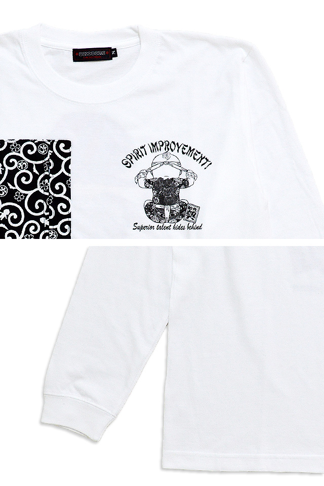 CHIGIRIさんから、「原点回帰胸ポケット付き長袖Tシャツ(CHL43-651)」のご紹介です。 CHIGIRIの一番人気「原点回帰」デザインを採用した長袖Tシャツです。 フロント右胸には、オリジナルのちぎり唐草柄生地で製作したファスナー付きポケットを縫い付けました。 ボディーには、綿100%のさらりとした肌触りの薄手なTシャツ生地を使用。 | |||||||||||||||||||||||||