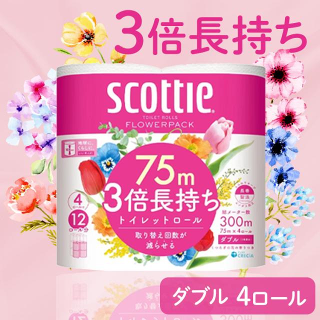 トイレットペーパー ダブル 4ロール スコッティ フラワーパック 3倍長持ち トイレット4ロール 75mダブル 日本製紙クレシア 日本製紙クレシア トイレ 紙 トイレ用品 3倍巻 クレシア scottie