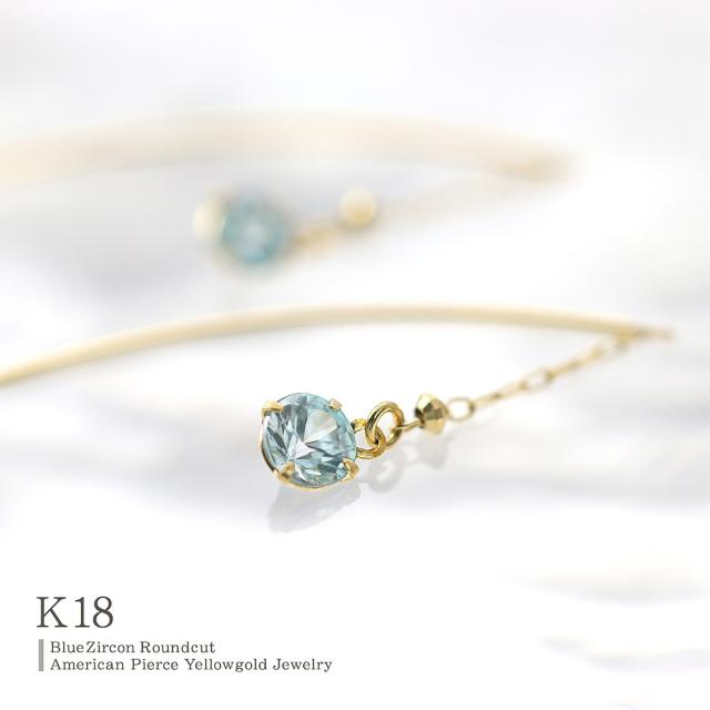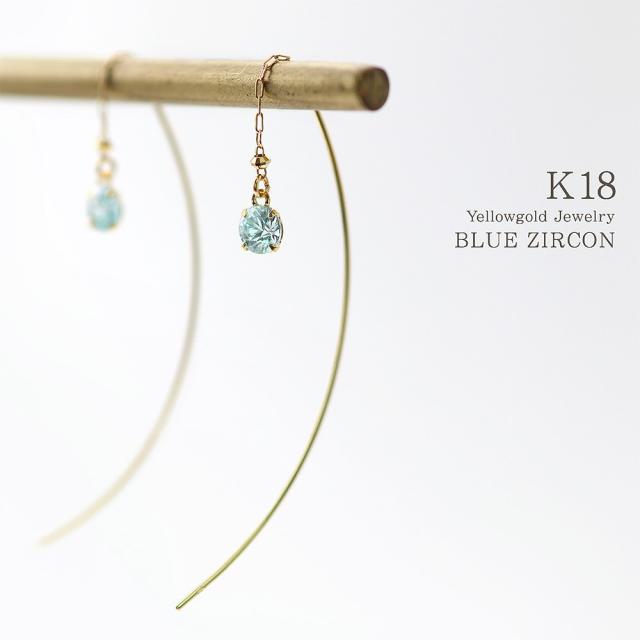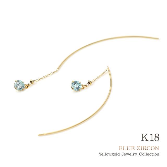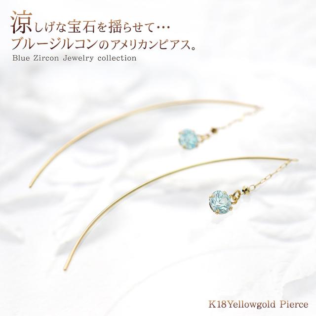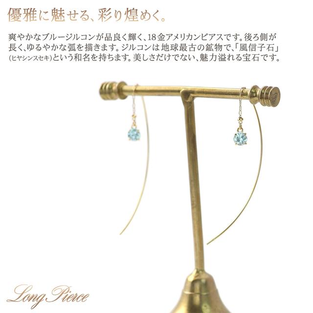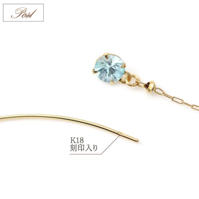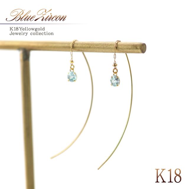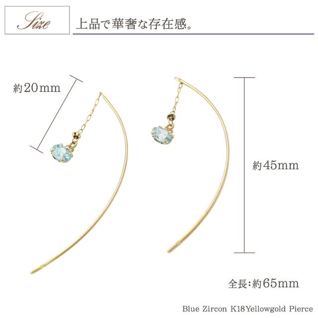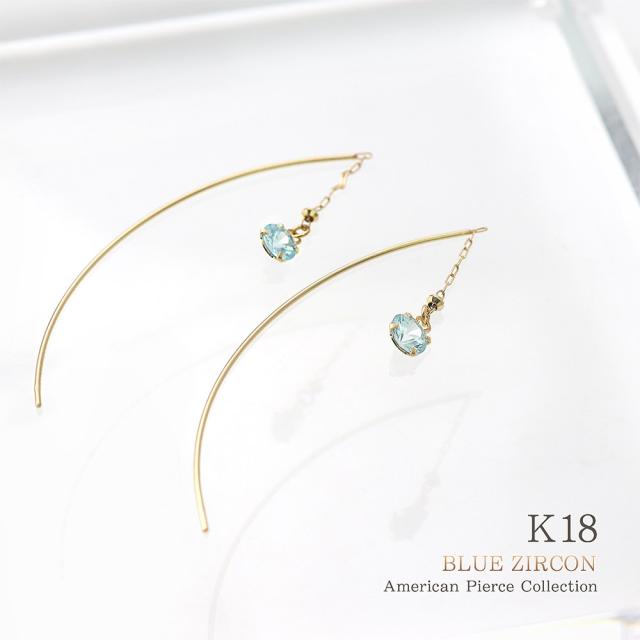 ブルージルコン ピアス 18金 レディース アメリカンピアス ロング ゆれる シンプル K18 18K イエローゴールド 宝石 12月誕生石 ブルー 青 水色 ジルコン 揺れる ジュエリー アクセサリー プレゼント 女性 妻 嫁 30代 40代 弓 クリスマス プレゼント 新しい誕生石